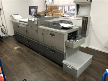 Collating machine / brochure production MKW Rapid UT 12/B3/GS + SFT 350 Year of manufacture: 2008, Format: min. 10 x 14 cm, max. 35 x 50 cm Equipment: 12 stations gathering machine TFT touch operation Circulation toothed belt table with tandem function 1:1 and 2:1 timing Possibility of insertion at any station Carton change function at any station Adjustable tilting suction cups Side and front blowing air Max. stack height 700 mm Paper weight from 14 – 1000 g/m² Self-measuring electronic double and missing sheet control Stitching-folding-cutting unit SFT 350 Quick format adjustment Front trim with 6cm minimum trimming via upper and lower blades Blow-off air on the blade Adjustable pressing device 2 stitching heads Hohner 48/S PC-controlled collating with the MKW RAPID® UT series The circulating table principle enables tandem production and guarantees safe and smooth paper transport. Tandem Function: The tandem system is activated by a simple switch on the control panel. The parallel use of two stations with the same pressure enables up to 75% higher production output. Single function Standard collation in 1:1 operation with high page counts. MKW RAPID UT · Control System The use of state-of-the-art industrial PC technology ensures precise system control, digitally monitors assembly , and allows you to connect to your company's production control system. The operating system with a high-quality TFT display allows for straightforward machine operation. All settings are made using logically structured menus that are easily accessed on the display. Operator guidance and color-coded status indicators ensure optimal production processes. Saving and retrieving job configurations in seconds Combinable production counters for exact print runs and separation Standard special functions programmable at any station Standard quality control through missing and double sheet monitoring at each station Automatic rejection of faulty sets for non-stop operation Dynamic station selection for shortest setup times during job changes